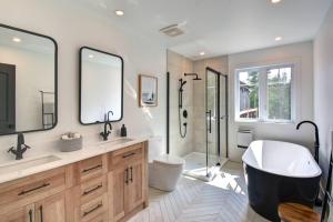 Tato vila má 4 ložnice, obývací prostor, kuchyň s kompletním vybavením včetně lednice a myčky nádobí a 2 koupelny. Vila v Chalet SPA SAUNA Tremblant je vybavena TV a koupelnou s fénem.