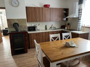 The holiday home with a terrace and garden views features 2 bedrooms, a living room, a flat-screen TV, an equipped kitchen with a dishwasher and an oven, and 1 bathroom with a bidet. Chalupa Dubné-Křenovice4 also features a seating area and a fireplace.