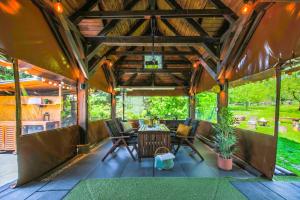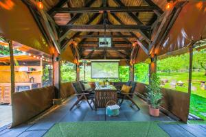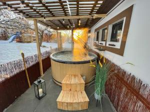 This luxurious holiday home features a hot tub, a spa bath and a fireplace. This spacious holiday home is comprised of 1 living room, 3 separate bedrooms and 2 bathrooms with a shower and free toiletries. Guests will find a stovetop, a refrigerator, a dishwasher and kitchenware in the fully equipped kitchen. The holiday home also has a barbecue. The holiday home offers a flat-screen TV with streaming services, a washing machine, a private entrance, soundproof walls as well as garden views. The unit offers 7 beds.