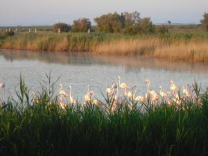 Obiekt Chambre les flamants, climatisation, avec vue imprenable sur les étangs, petit déjeuner offert położony jest w miejscowości Saintes-Maries-de-la-Mer i oferuje bezpłatne Wi-Fi oraz klimatyzację. Odległość od ważnych miejsc: Plaża Plage de l’Amphora - 1 km, Amfiteatr w Arles - 38 km. W okolicy pensjonatu B&B panują doskonałe warunki do uprawiania trekkingu, nurkowania i wędkarstwa. Goście Chambre les flamants, climatisation, avec vue imprenable sur les étangs, petit déjeuner offert mają do dyspozycji taras.