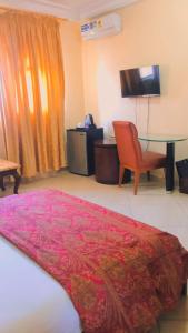 Cette chambre double spacieuse dispose de la climatisation, d’un minibar ainsi que d’une salle de bains privative avec une baignoire et une douche. Le logement dispose de 1 lit.