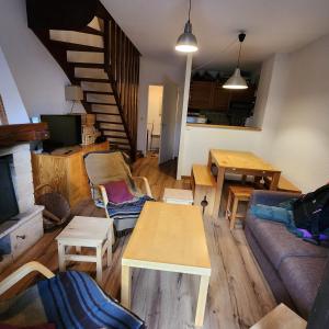Die Ferienwohnung im Charmant Duplex à Monêtier Serre-Chevalier verfügt über eine Terrasse, 2 Schlafzimmer, ein Wohnzimmer und eine gut ausgestattete Küche. Es gibt einen Flachbild-TV.