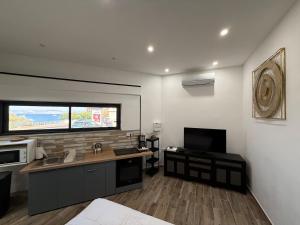 Chambres: 1The studio features a wardrobe, a sofa, as well as a private bathroom featuring a shower and a hairdryer. In the kitchen, guests will find a stovetop, a refrigerator, kitchenware and an oven. The air-conditioned studio offers a flat-screen TV with satellite channels, a coffee machine, a seating area, a dining area as well as sea views. The unit offers 1 bed.