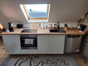 L'unità di la struttura presenta soggiorno, 2 camere da letto, cucina con frigo e macchina da caffè, e 2 bagni con doccia e set di cortesia. charmantes Apartment mit voll ausgestatteter Küche, Kingsize-Betten, Billard & Tischkicker fornisce lenzuola e asciugamani ai propri ospiti.