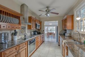Questa villa comprende 5 camere da letto, 3 bagni, lenzuola, asciugamani, una TV a schermo piatto con canali satellitari, una zona pranzo, una cucina con utensili e un patio con vista sul giardino.