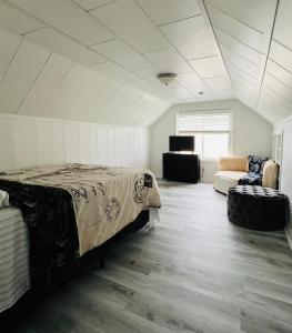 Providing free toiletries, this holiday home includes a shared bathroom with a bath and a shower. Meals can be prepared in the well-fitted kitchen, which is equipped with a stovetop, a refrigerator, kitchenware and an oven. The air-conditioned holiday home provides a flat-screen TV with streaming services, a washing machine, a private entrance, a tea and coffee maker as well as a quiet street view. The unit offers 3 beds.