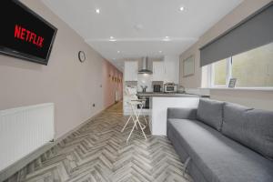 The 1-bedroom apartment at Charming & Central - Cardiff Central - Fast Wifi features a living room with a flat-screen TV, a fully equipped kitchen, and 1 bathroom. The accommodation is non-smoking.