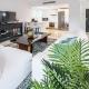 La cucina di Charming and Modern 3-Bedroom Duplex in Aloha Pueblo with Mountain Views è attrezzata con frigo, forno, lavastoviglie e macchina da caffè.