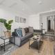 L'appartamento con 1 camera da letto presso Charming 2 Bedroom City - Centre Flat with Sunny Patio presenta soggiorno con TV a schermo piatto, cucina e bagno.