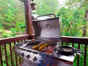 Questo chalet con aria condizionata comprende 5 camere da letto, un soggiorno, una cucina con utensili, frigorifero e macchina da caffè, e 5 bagni con vasca o doccia e set di cortesia. Charming Cabin, Seasonal Decor & Pool, 3min to Pkwy, Grill, GameRoom, Wifi & Workstation, Sleeps 14 fornisce lenzuola e asciugamani.