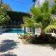 Dieses Ferienhaus mit einer Veranda / Patio und Poolblick hat 1 Schlafzimmer, ein Wohnzimmer, einen Flachbild-TV, eine gut ausgestattete Küche mit einem Kühlschrank und einem Ofen sowie 1 Badezimmer mit einer Dusche.