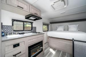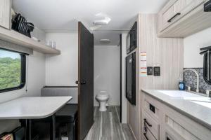 La casa o chalet tiene 1 dormitorio y 1 baño con ducha, bañera y artículos de aseo gratuitos. La casa o chalet Charming Riverside Camper with Pool, Pickleball & Trails near Blue Ridge, Georgia proporciona toallas y ropa de cama.