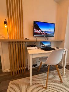 Apartmán Charming Studio zahrnuje 1 ložnici, TV s plochou obrazovkou a kuchyň.
