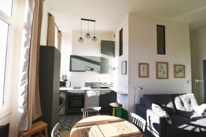 Charming studio very central and calm è dotato di TV a schermo piatto. La sistemazione di Charming studio very central and calm offre doccia, set di cortesia e asciugacapelli, oltre a una cucina con frigo, forno e microonde.