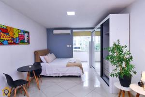 Klimatizovaný apartmán Charmoso e bem decorado studio 200m da Praia nabízí 1 ložnici, posezení a 1 koupelnu s fénem a toaletními potřebami zdarma. Tento apartmán s výhledem na město má TV, kuchyň s dobrým vybavením včetně lednice, mikrovlnné trouby a varné desky a koupelnu.