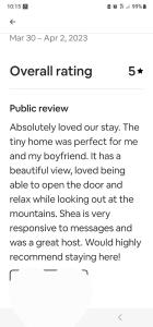 Lesen Sie Gästebewertungen über Chasing Views Tiny House