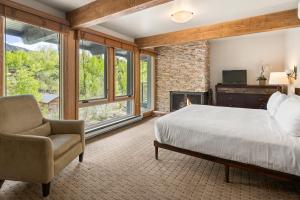 Chateau Roaring Fork 22, Mountain Chic 4-Bedroom Condo on Roaring Fork River - Walk to Downtown Aspen se nachází v ideální lokalitě v destinaci Aspen a nabízí celoročně otevřený venkovní bazén a nepřetržitě otevřenou recepci. The John Denver Sanctuary se nachází 600 metrů odtud a Independence Pass 6,8 km. Z balkonu ubytování Chateau Roaring Fork 22, Mountain Chic 4-Bedroom Condo on Roaring Fork River - Walk to Downtown Aspen se otevírá výhled na hory.