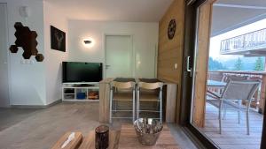 Questo appartamento con terrazza e vista sulla montagna offre 1 camera da letto, un soggiorno, una TV a schermo piatto, una cucina con frigorifero e lavastoviglie e 1 bagno con vasca da bagno. Châtel - Appartement 4-6 personnes - Les Châlets des Freinets C203 fornisce lenzuola e asciugamani ai propri ospiti.