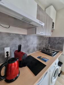 - Small kitchen area,