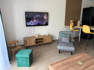 This apartment features 1 living room, 2 separate bedrooms and 1 bathroom with a bath. Guests can make meals in the kitchen that features a stovetop, a refrigerator, a dishwasher and kitchenware. Boasting a terrace with sea views, this apartment also features a washing machine and a flat-screen TV. V této ubytovací jednotce se nachází 3 postele.