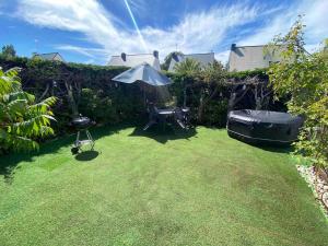 Guests will have a special experience as this holiday home offers a private pool, a hot tub and a fireplace. Featuring a private entrance, this holiday home comprises 1 living room, 3 separate bedrooms and 1 bathroom with a shower and a hairdryer. Guests will find a stovetop, a refrigerator, a dishwasher and kitchenware in the well-equipped kitchen. The holiday home also provides guests with a barbecue. Boasting a terrace with garden views, this holiday home also provides a washing machine and a flat-screen TV. The unit offers 4 beds.