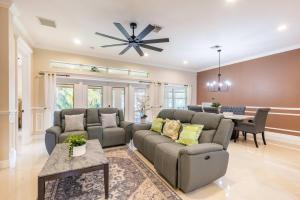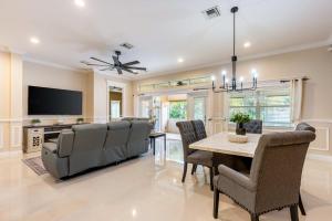 This holiday home features a fireplace. Boasting a private entrance, this air-conditioned holiday home includes 1 living room, 3 separate bedrooms and 3 bathrooms with a bath and a shower. Guests will find a stovetop, a refrigerator, a dishwasher and kitchenware in the kitchen. The holiday home also features a barbecue. The spacious holiday home offers a flat-screen TV with streaming services, a washing machine, a tea and coffee maker, a seating area as well as garden views. The unit has 3 beds.