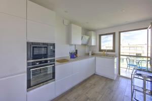 Diese Ferienwohnung mit einer Terrasse und Meerblick bietet 1 Schlafzimmer, ein Wohnzimmer, einen TV, eine gut ausgestattete Küche mit einem Kühlschrank und einem Geschirrspüler sowie 1 Badezimmer mit einer Dusche. In dieser Ferienwohnung werden Handtücher und Bettwäsche angeboten.