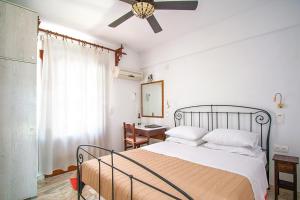 Las habitaciones del Chrysoula están rodeadas de vegetación exuberante y cuentan con muebles de madera oscura y techos con vigas de madera. TV y nevera. Algunos alojamientos tienen balcón amueblado con vistas al mar Egeo y a las islas vecinas.