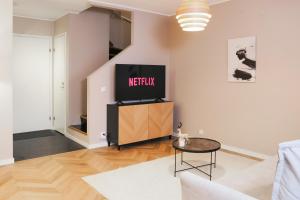 Guests will have a special experience as the apartment offers a sauna. This spacious apartment consists of 1 living room, 2 separate bedrooms and 2 bathrooms with a shower and bathrobes. The well-equipped kitchen features a stovetop, a refrigerator, a dishwasher and kitchenware. Featuring a terrace with garden views, this apartment also provides a washing machine and a flat-screen TV. The unit offers 4 beds.