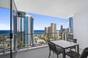 This 2 bedroom apartment is located on the 20th floor and has 2 bathrooms. It features ocean views, and a secure car parking space. The bedding configuration comprises of 1 queen and 2 single beds.
