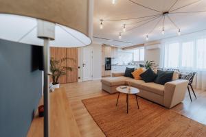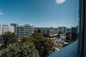 The spacious apartment with a balcony and city views features 1 bedroom, a living room, a flat-screen TV, an equipped kitchen with an oven and a microwave, and 1 bathroom with a bath. Towels and bed linen are provided at the property. City Center 2BR with Sauna, Walkable spot offers views of the inner courtyard.