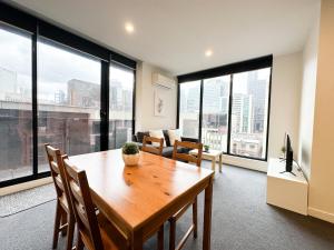 Das City Central 2BR Retreat on Chinatown Bourke Street umfasst zwei Schlafzimmer, eine Küche mit Kühlschrank und Geschirrspüler, einen Flachbild-TV, einen Sitzbereich sowie ein Bad mit Dusche. In dieser Ferienwohnung werden Handtücher und Bettwäsche zur Verfügung gestellt.
