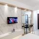 Questo appartamento comprende 1 camera da letto, 1 bagno, lenzuola, asciugamani, una TV a schermo piatto con canali via cavo, un angolo cottura con utensili e un balcone con la vista sulla città.