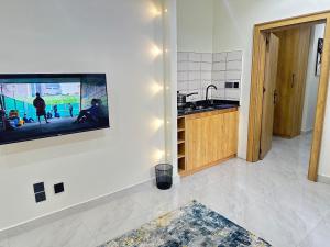 The studio features air conditioning, soundproof walls, as well as a private bathroom boasting a bath and a shower. The well-equipped kitchen has a refrigerator, a dishwasher, kitchenware and a microwave. The studio offers a wardrobe, an electric kettle, a tiled floor, heating, as well as a flat-screen TV with streaming services. V této ubytovací jednotce se nachází 1 postel.