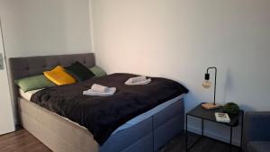 Apartament mieści dwie sypialnie, salon, łazienkę z prysznicem i suszarką oraz kuchnię z lodówką i ekspresem. Ręczniki i pościel są dostępne w apartamencie CityStay Wolfsburg - Beetle.