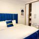 Apartament w classy charming apartments with swimming pool modern equipped gym free parking space child play area and proximity to major shopping malls obejmuje sypialnię, kuchnię oraz łazienkę. Wyposażenie obiektu obejmuje telewizor z płaskim ekranem.