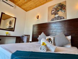 Camera familiare dotata di aria condizionata, TV a schermo piatto con servizi di streaming, bagno privato e terrazza con vista giardino. Numero di letti disponibili: 2.