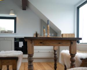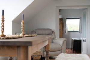 This holiday home provides a fireplace. Featuring a private entrance, this holiday home comprises 1 living room, 2 separate bedrooms and 2 bathrooms with a shower and a hairdryer. Meals can be prepared in the kitchen, which comes with a stovetop, a refrigerator, a dishwasher and kitchenware. The holiday home features tiled floors, a seating area with a flat-screen TV, a washing machine, a tea and coffee maker as well as sea views. The unit offers 3 beds.