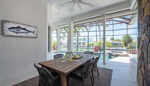 Cette maison de vacances comporte 3 chambres, 2 salles de bains, du linge de lit, des serviettes, une télévision à écran plat avec les chaînes du câble, un coin repas, une cuisine entièrement équipée et un patio offrant une vue sur la piscine.