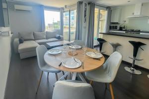 The apartment with a terrace and sea views features 2 bedrooms, a living room, a TV, an equipped kitchen with a dishwasher and an oven, and 1 bathroom with a shower. Towels and bed linen are provided at CLOSE SEA - Terrace with Sea View AC and Parking - BENAKEY.