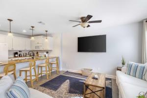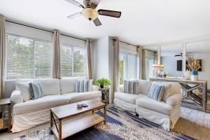 Coastal-Chic Condo Steps from the Sand cuenta con aire acondicionado, 1 dormitorio, sala de estar, cocina equipada con nevera y baño con ducha y artículos de aseo gratuitos. El apartamento Coastal-Chic Condo Steps from the Sand dispone de toallas y ropa de cama.