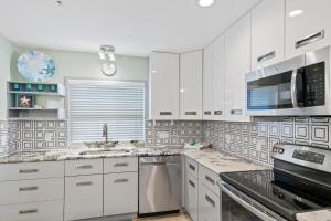 Klimatizovaný apartmán v Coastal Decor - Top Floor View - Crimson #303 zahrnuje 3 ložnice, kuchyň s lednicí a myčkou a 3 koupelny. Apartmán má také koupelnu.