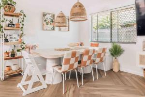 Obiekt Coastal Med oasis by the beach, pet friendly! położony jest w miejscowości Kawana Waters i oferuje klimatyzację, balkon oraz bezpłatne Wi-Fi. Odległość od ważnych miejsc: Plaża Kawana Beach - 2,6 km, Akwarium SEA LIFE Sunshine Coast - 12 km. Dom wakacyjny zapewnia prywatny basen, ogród i bezpłatny parking.