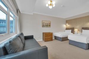 This spacious apartment comprises 1 living room, 3 separate bedrooms and 2 bathrooms with a bath and a shower. Meals can be prepared in the well-fitted kitchen, which comes with a stovetop, a refrigerator, kitchenware and an oven. Featuring a balcony with sea views, this apartment also provides a washing machine and a flat-screen TV with streaming services. The unit provides 5 beds.