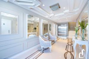 Tento apartmán s klimatizací má 3 ložnice, kuchyň s kompletním vybavením včetně lednice a trouby a 4 koupelny. Koupelna je vybavená vířivkou.