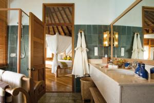 Offrant une vue imprenable sur l’océan ou la végétation environnante, les villas sont climatisées et dotées d’un beau mobilier en bois et en rotin. Elles s’ouvrent sur une terrasse privée avec un coin salon extérieur. Leur salle de bains privative est pourvue d’articles de toilette gratuits, comme des chaussons et un kit dentaire.