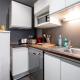 Apartament Coeur de Lille - cosy appartement 5 z 2 sypialniami dysponuje salonem, kuchnią ze zmywarką i lodówką oraz łazienką z suszarką.