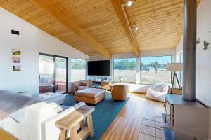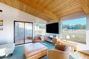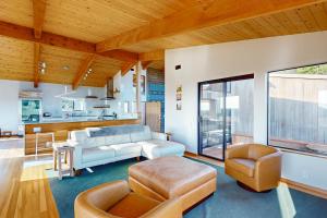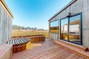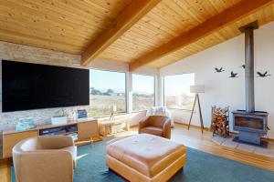 This holiday home features a hot tub. This spacious holiday home comprises 1 living room, 2 separate bedrooms and 2 bathrooms with a bath and free toiletries. Guests can make meals in the kitchen that comes with a stovetop, a refrigerator, a dishwasher and kitchenware. The holiday home provides a flat-screen TV with streaming services, a washing machine, a private entrance, a tea and coffee maker as well as sea views. The unit offers 3 beds.