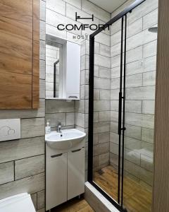 Vlastní koupelna je vybavená sprchou. Všechny pokoje v ubytování Хостел Comfort mají vlastní koupelnu.
