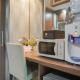 Klimatizovaný apartmán v Comfort and Cozy Studio at MT Haryono Square Apartment By Travelio má 1 ložnici, 1 koupelnu a plně vybavenou kuchyň s lednicí a varnou deskou. Koupelna je vybavená sprchou.